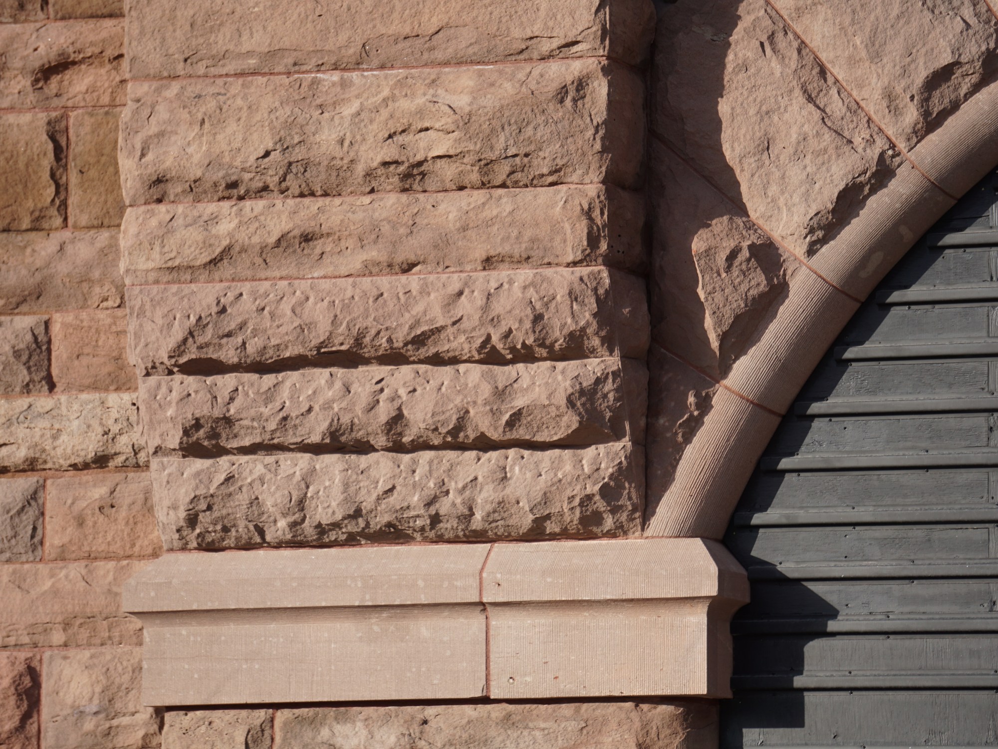 These two springers are part of the newly designed entrance to the North Park Armoury in Halifax, NS. Fundy Stonecraft was hired to fabricated the stones from rough sawn blocks to finished product according to drawings that were provided. The challenge of this project was the creation of false joints in the rock face, and moving and manipulating a 18,000lb stone.