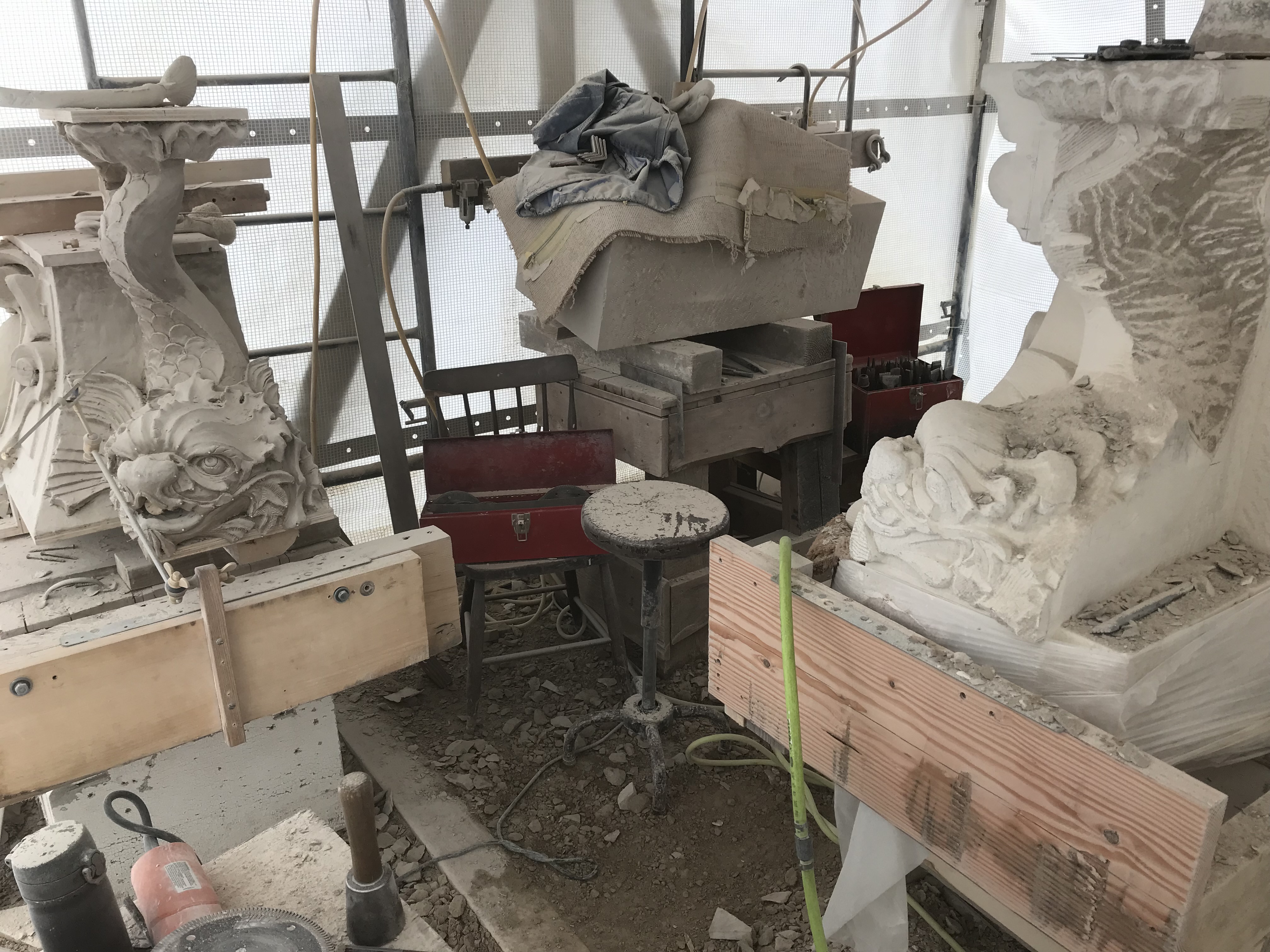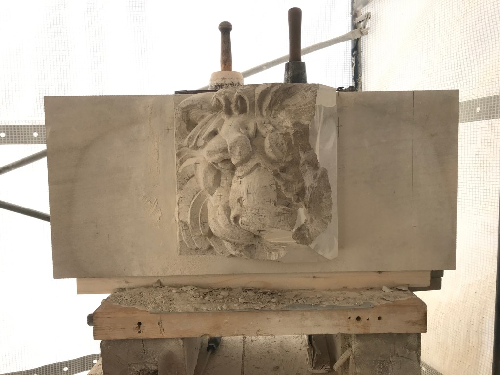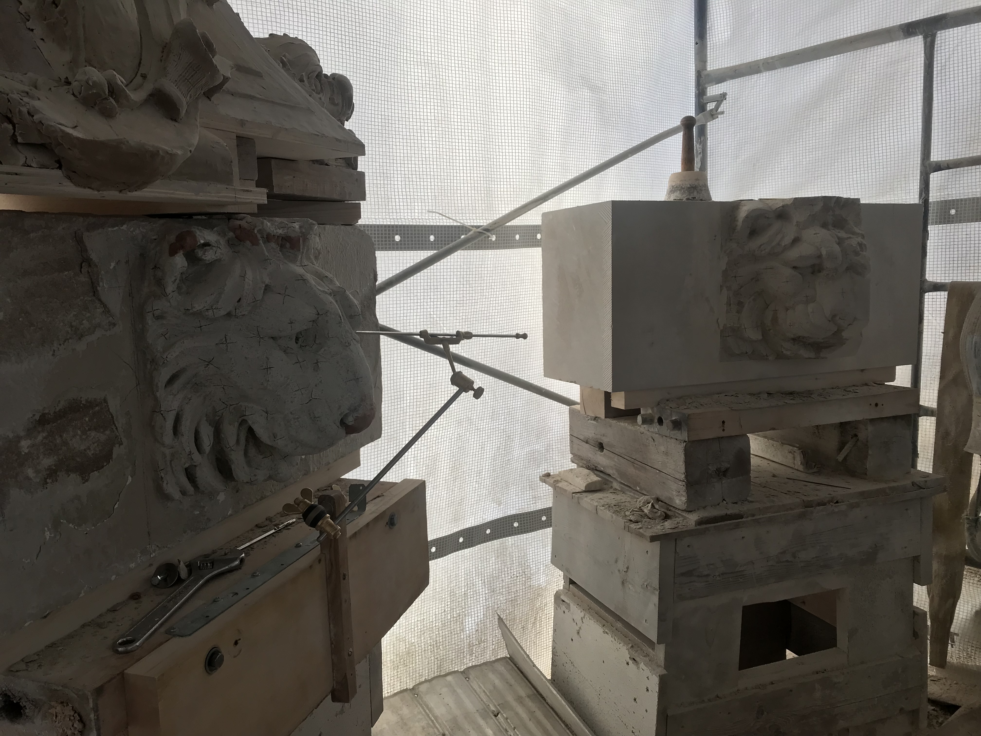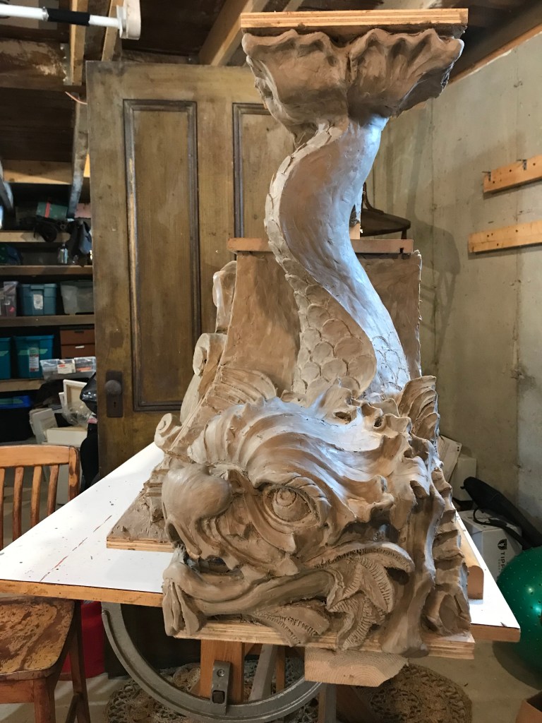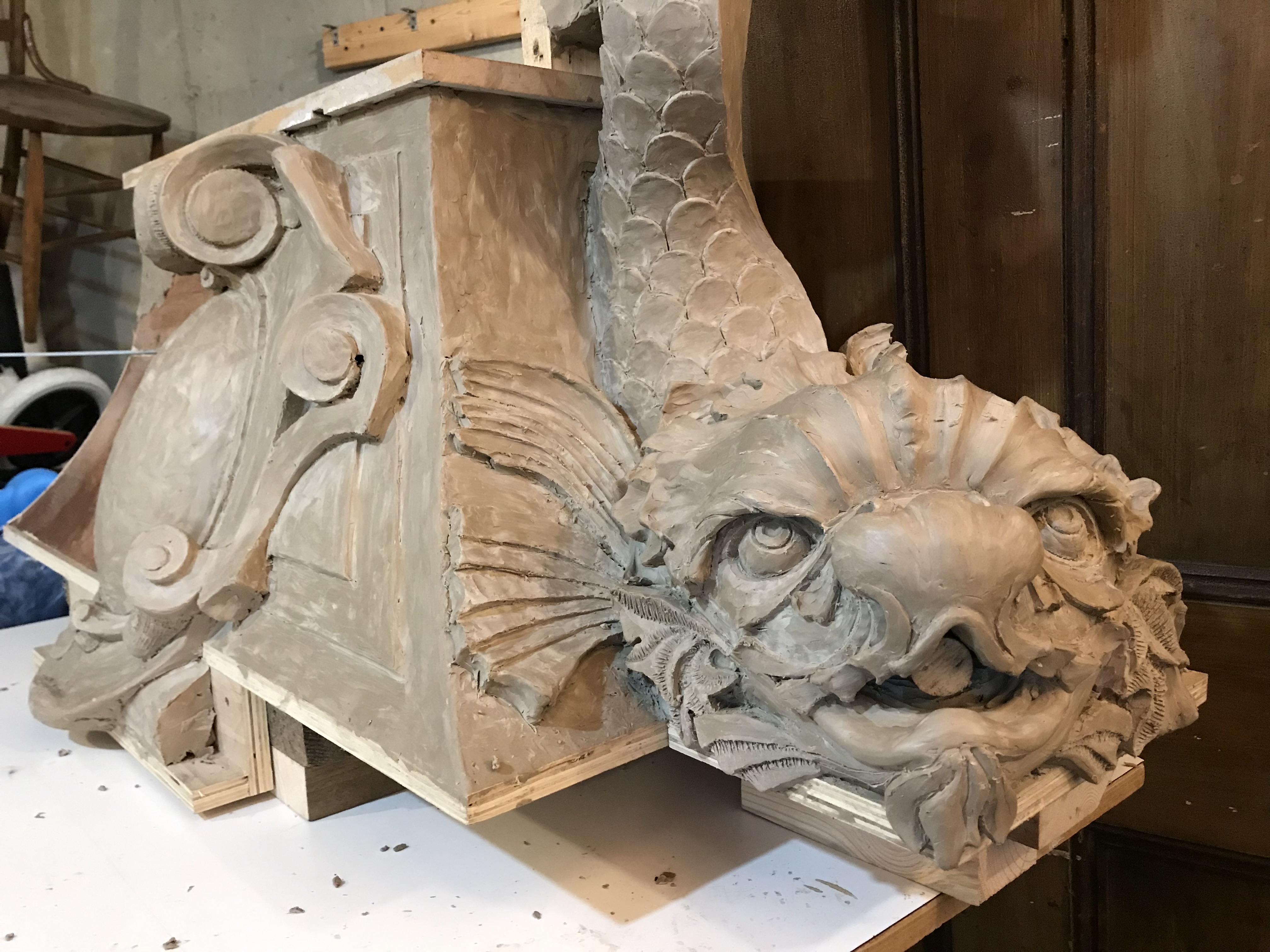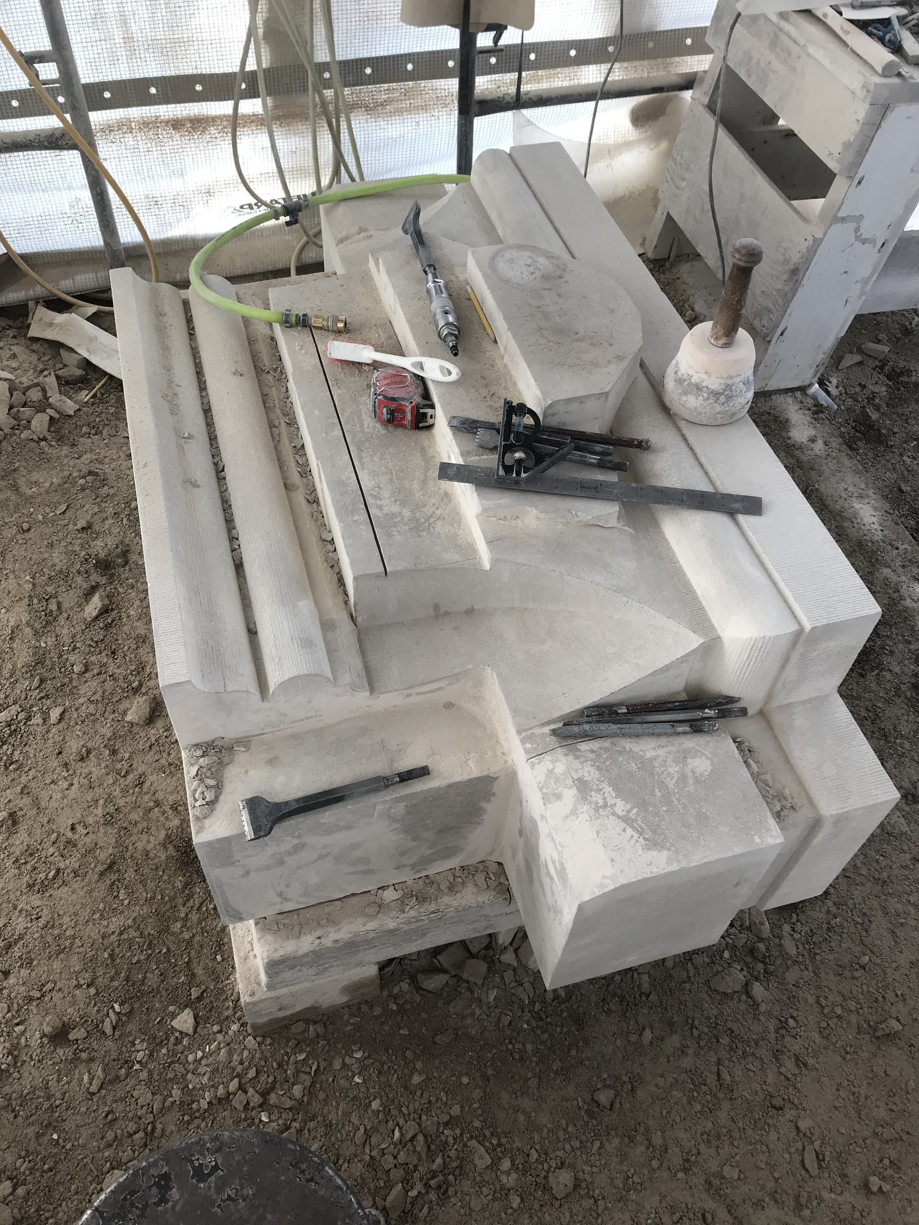 Fundy Stonecraft was contracted to design and carve three replacement stones for a badly deteriorated fountain on the historic Twombly Florham Estate, now part of Farleigh Dickenson University. The design of the replacement stones involved detailed measurements of the existing stones, researching historic photographs to provide missing information (bowl dimensions, carving details), and computer and clay modelling of the bowl and pedestal. The replacement design proposal was submitted: